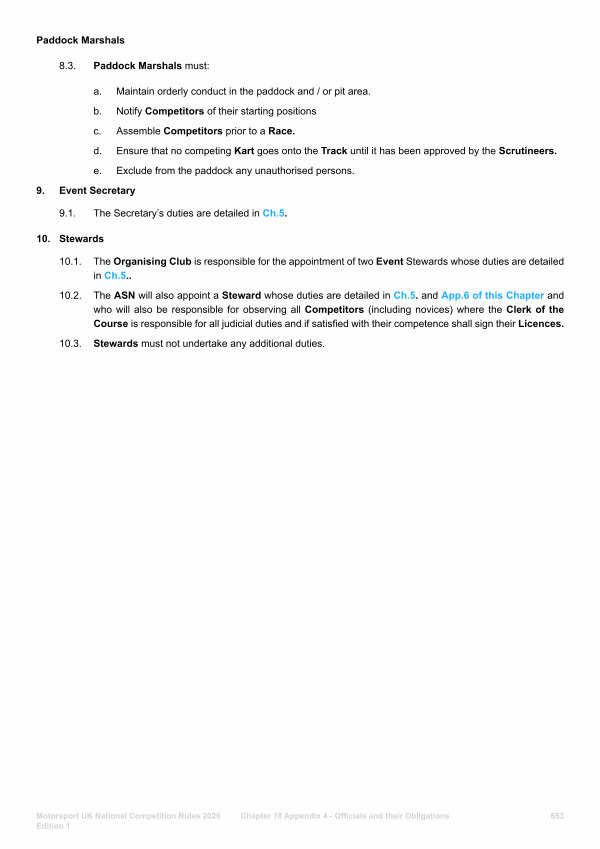 10.1. The Organising Club is responsible for the appointment of two Event Stewards whose duties are detailed in Ch. 5..