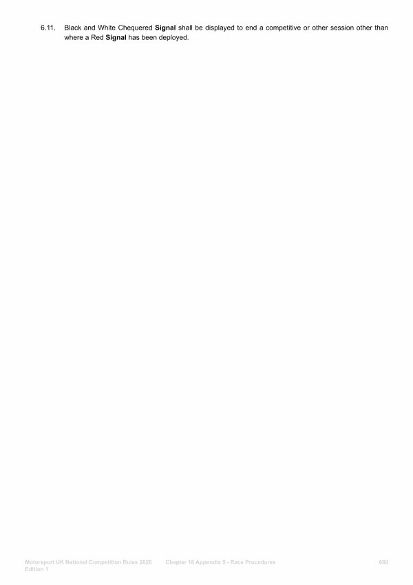 6.11. Black and White Chequered Signal shall be displayed to end a competitive or other session other than where a Red Signal has been deployed.