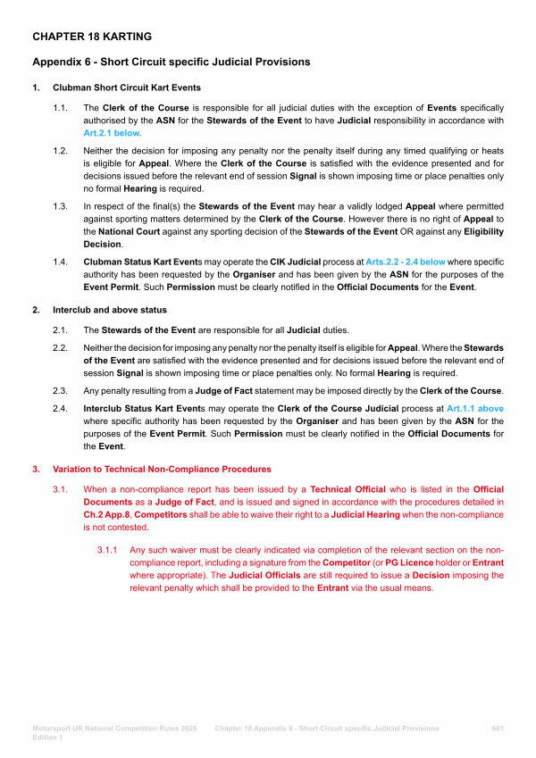 CHAPTER 18 KARTING Appendix 6- Short Circuit specific Judicial Provisions