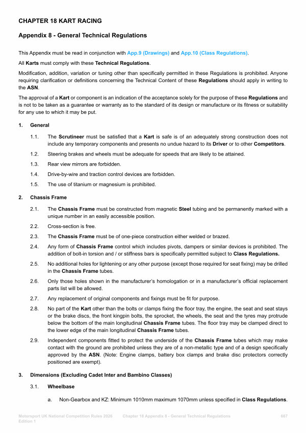 This Appendix must be read in conjunction with App. 9( Drawings) and App. 10( Class Regulations). All Karts must comply with these Technical Regulations.