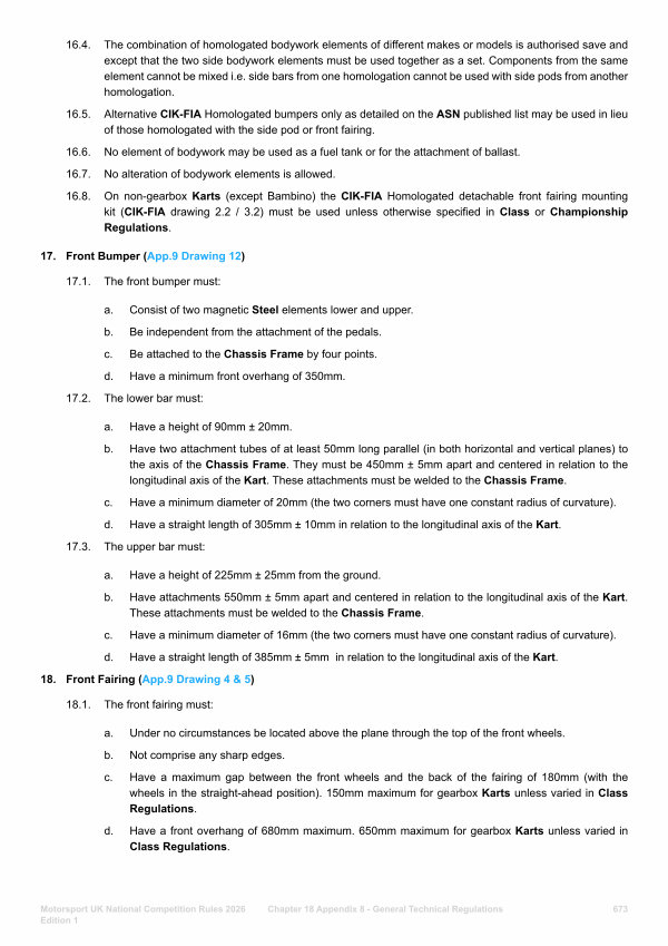16.5. Alternative CIK-FIA Homologated bumpers only as detailed on the ASN published list may be used in lieu of those homologated with the side pod or front fairing.