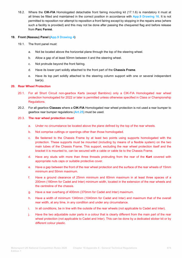20.1. For all Short Circuit non-gearbox Karts( except Bambino) only a CIK-FIA Homologated rear wheel protection homologated for 2022 or later is permitted unless otherwise specified in Class or Championship Regulations.