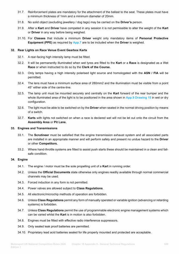 31.9. After a Kart and Driver have competed in any session it is not permissible to alter the weight of the Kart or Driver in any way before being weighed.