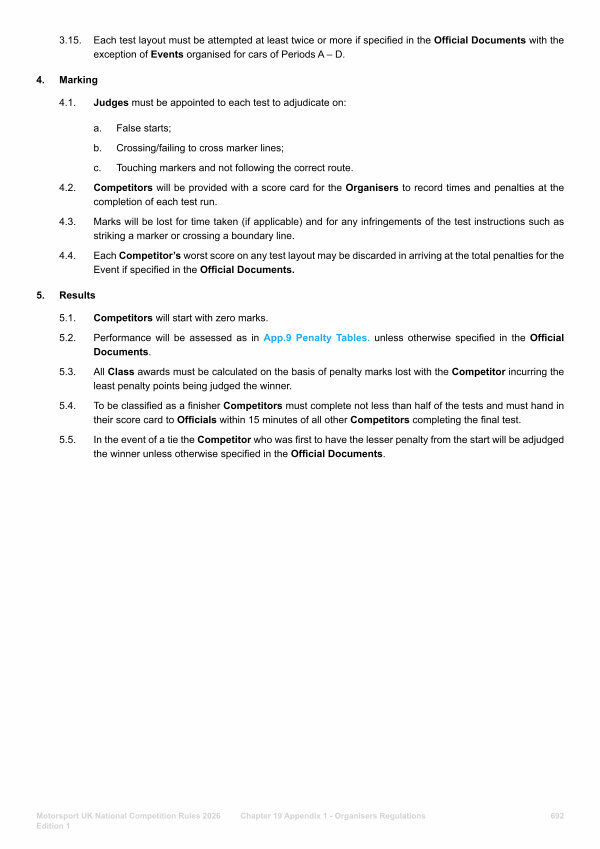 5.2. Performance will be assessed as in App. 9 Penalty Tables. unless otherwise specified in the Official Documents.
