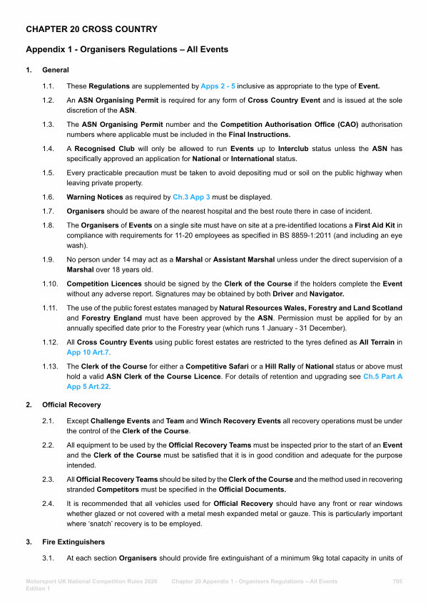 Chapter 20 Appendix 1- Organisers Regulations – All Events 705