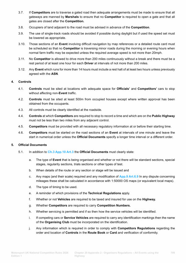 Chapter 20 Appendix 2- Organisers Regulations – All Events using the Highway