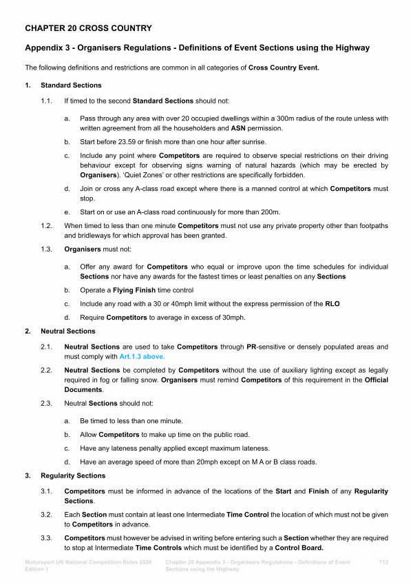 CHAPTER 20 CROSS COUNTRY Appendix 3- Organisers Regulations- Definitions of Event Sections using the Highway