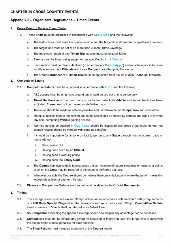 Chapter 20 Appendix 5- Organisers Regulations – Timed Events 718