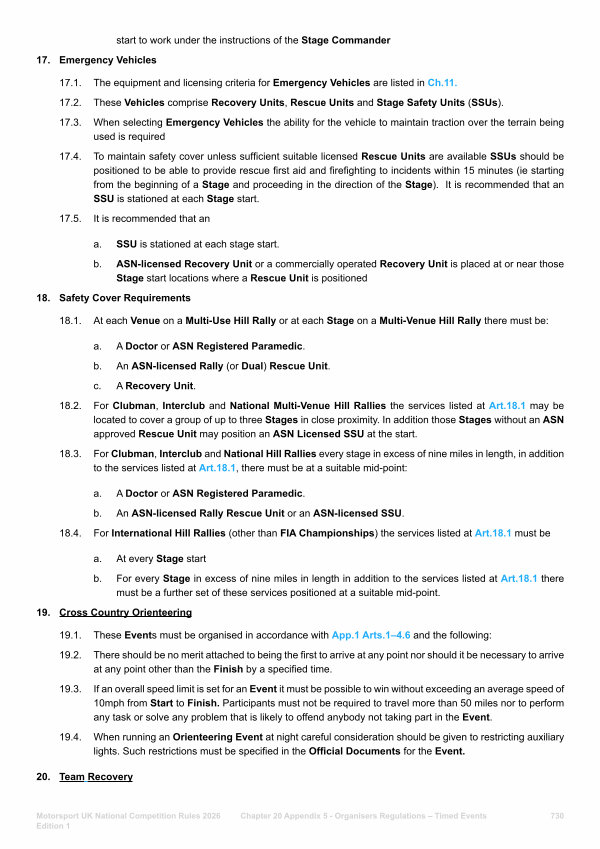 Chapter 20 Appendix 5- Organisers Regulations – Timed Events 730