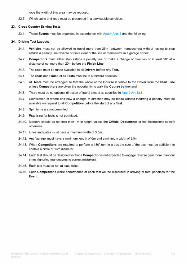 23. Cross Country Driving Tests 23.1. These Events must be organised in accordance with App. 4 Arts. 3 and the following: