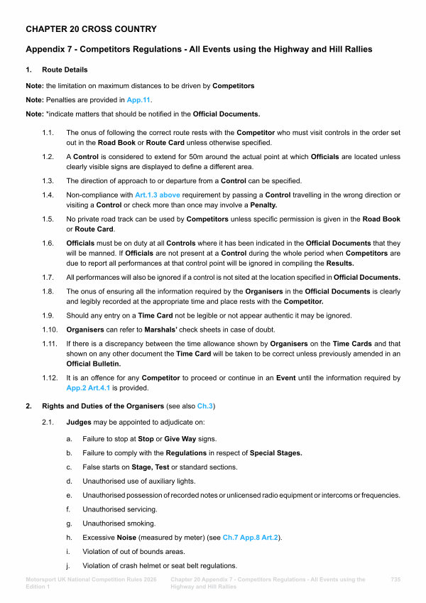 Chapter 20 Appendix 7- Competitors Regulations- All Events using the Highway and Hill Rallies