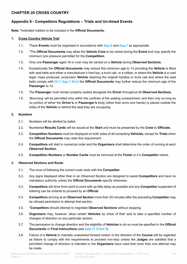 Chapter 20 Appendix 8- Competitors Regulations – Trials and Un-timed Events
