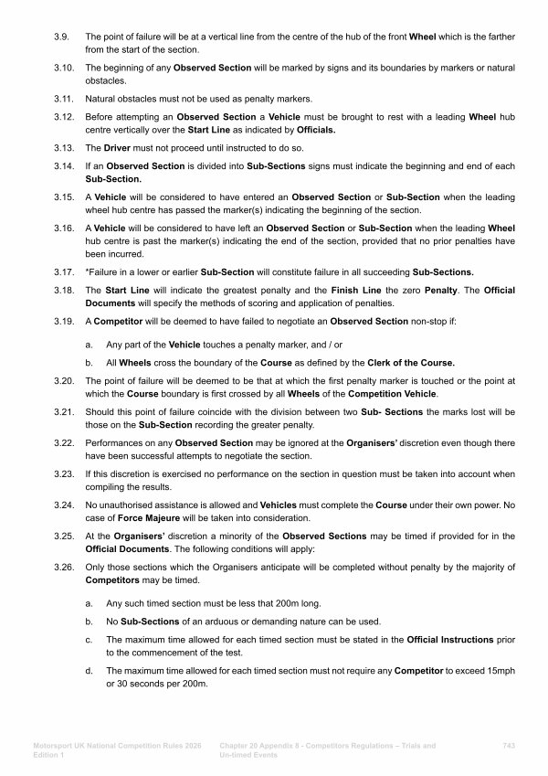 3.26. Only those sections which the Organisers anticipate will be completed without penalty by the majority of Competitors may be timed.