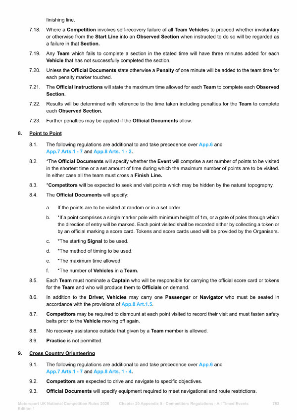 7.22. Results will be determined with reference to the time taken including penalties for the Team to complete each Observed Section.
