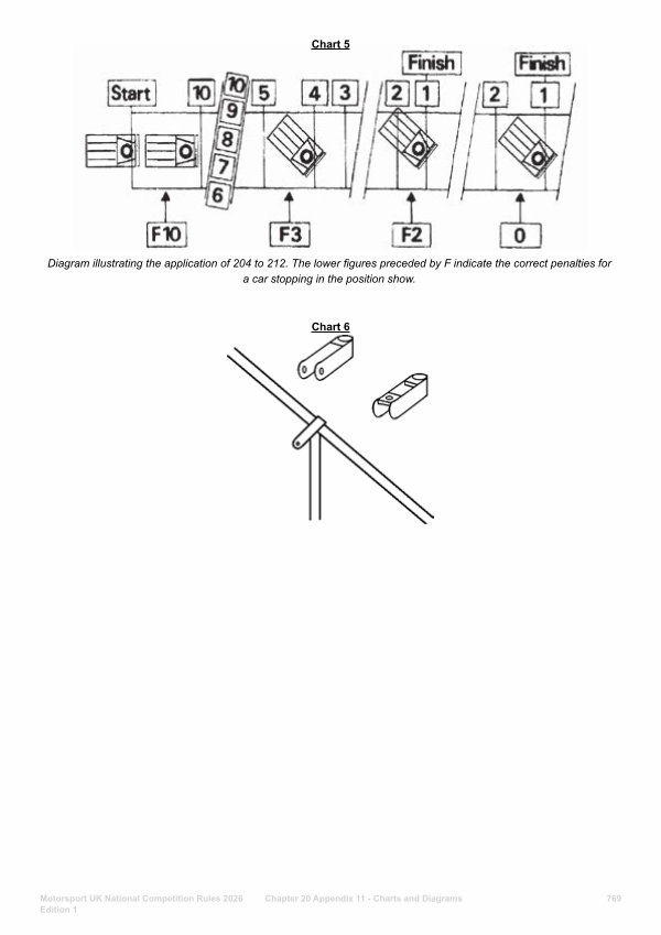 Diagram illustrating the application of 204 to 212. The lower figures preceded by F indicate the correct penalties for a car stopping in the position show.
