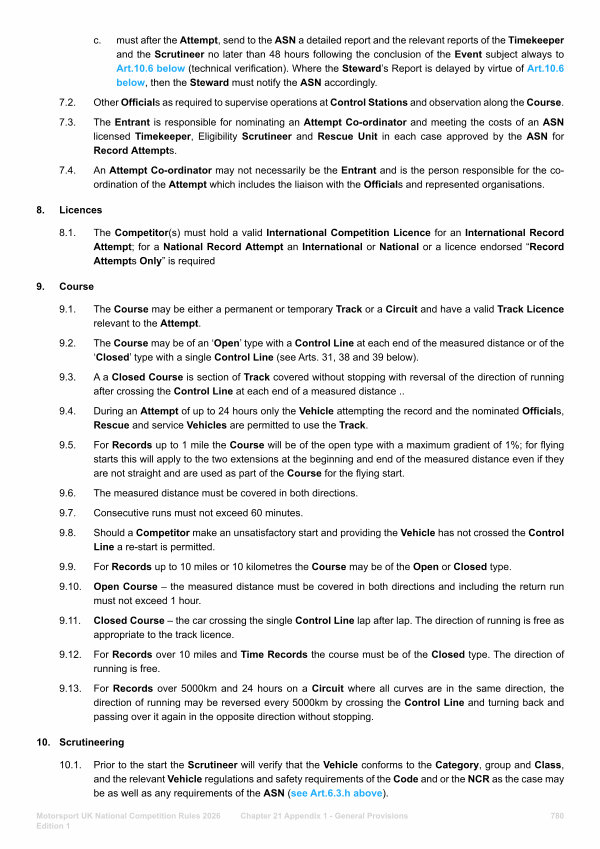 9.1. The Course may be either a permanent or temporary Track or a Circuit and have a valid Track Licence relevant to the Attempt.