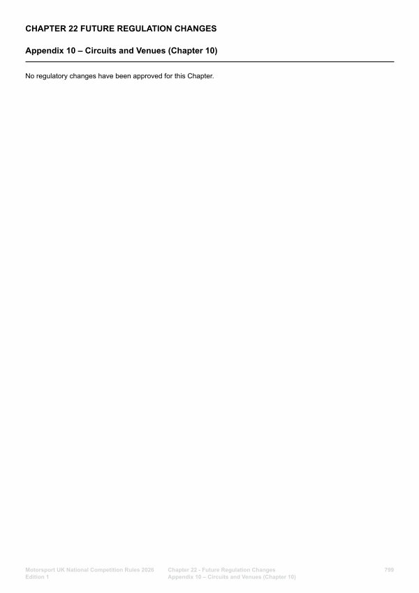 Chapter 22- Future Regulation Changes Appendix 10 – Circuits and Venues( Chapter 10)