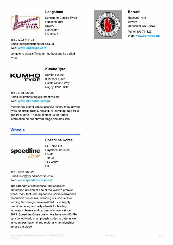 Tel: 01952 582825 Email: info @ speedlinecorse. co. uk Web: www. speedlinecorse. net