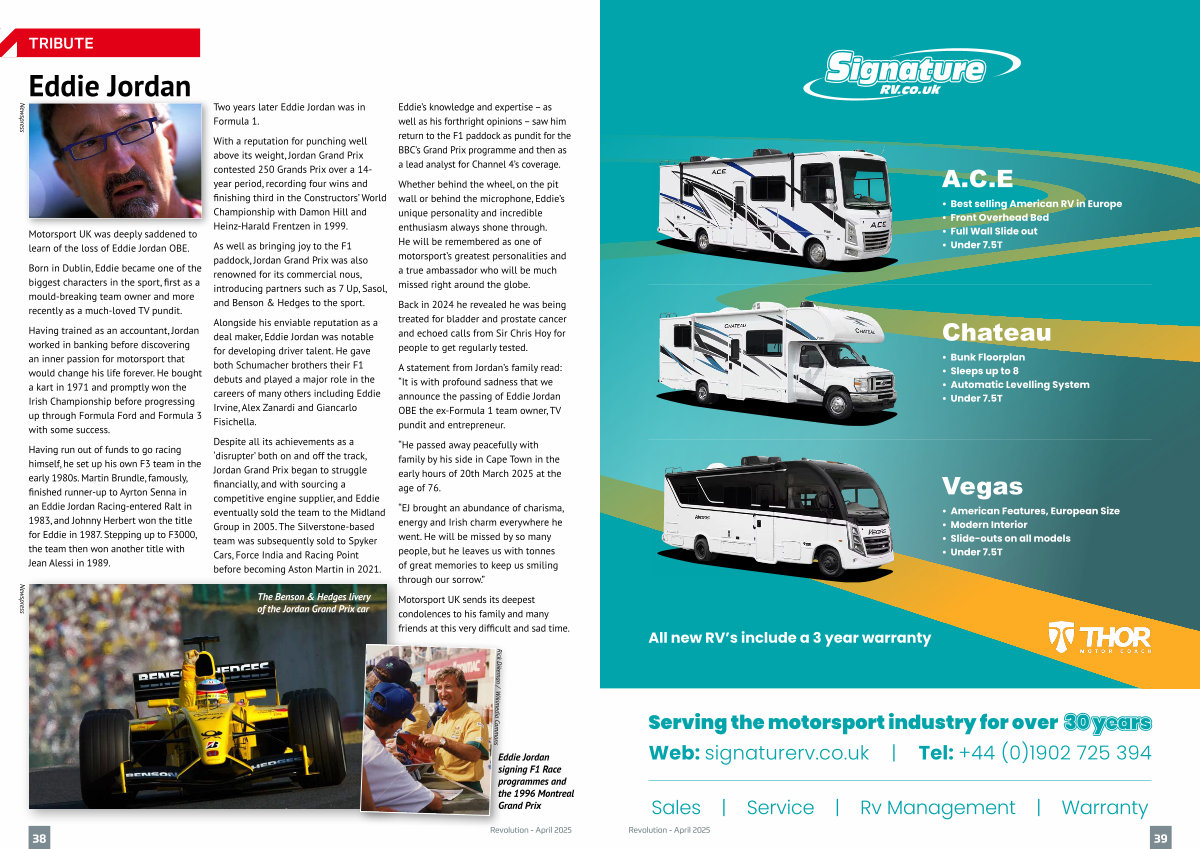Despite all its achievements as a‘ disrupter’ both on and off the track, Jordan Grand Prix began to struggle financially, and with sourcing a competitive engine supplier, and Eddie eventually sold the team to the Midland Group in 2005. The Silverstone-based team was subsequently sold to Spyker Cars, Force India and Racing Point before becoming Aston Martin in 2021.
