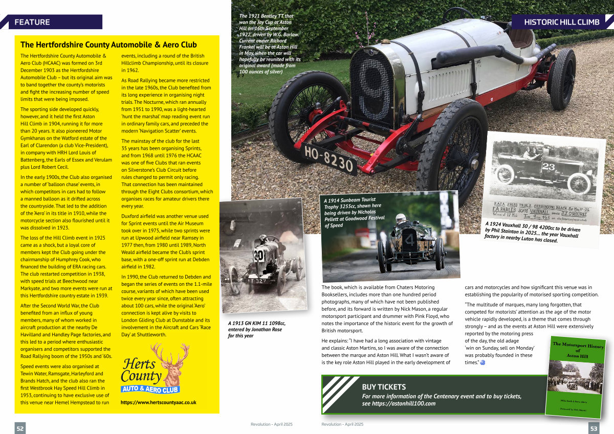 He explains:“ I have had a long association with vintage and classic Aston Martins, so I was aware of the connection between the marque and Aston Hill. What I wasn’ t aware of is the key role Aston Hill played in the early development of cars and motorcycles and how significant this venue was in establishing the popularity of motorised sporting competition.