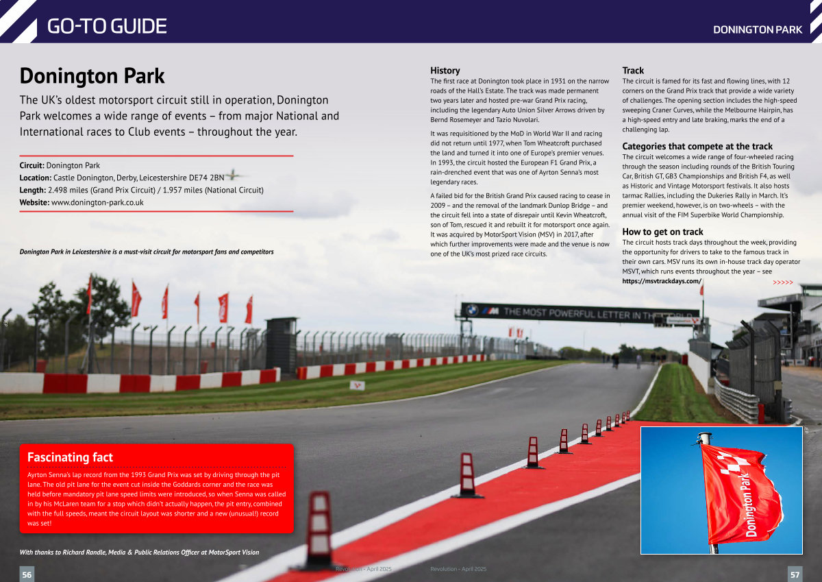 It was requisitioned by the MoD in World War II and racing did not return until 1977, when Tom Wheatcroft purchased the land and turned it into one of Europe’ s premier venues. In 1993, the circuit hosted the European F1 Grand Prix, a rain-drenched event that was one of Ayrton Senna’ s most legendary races.