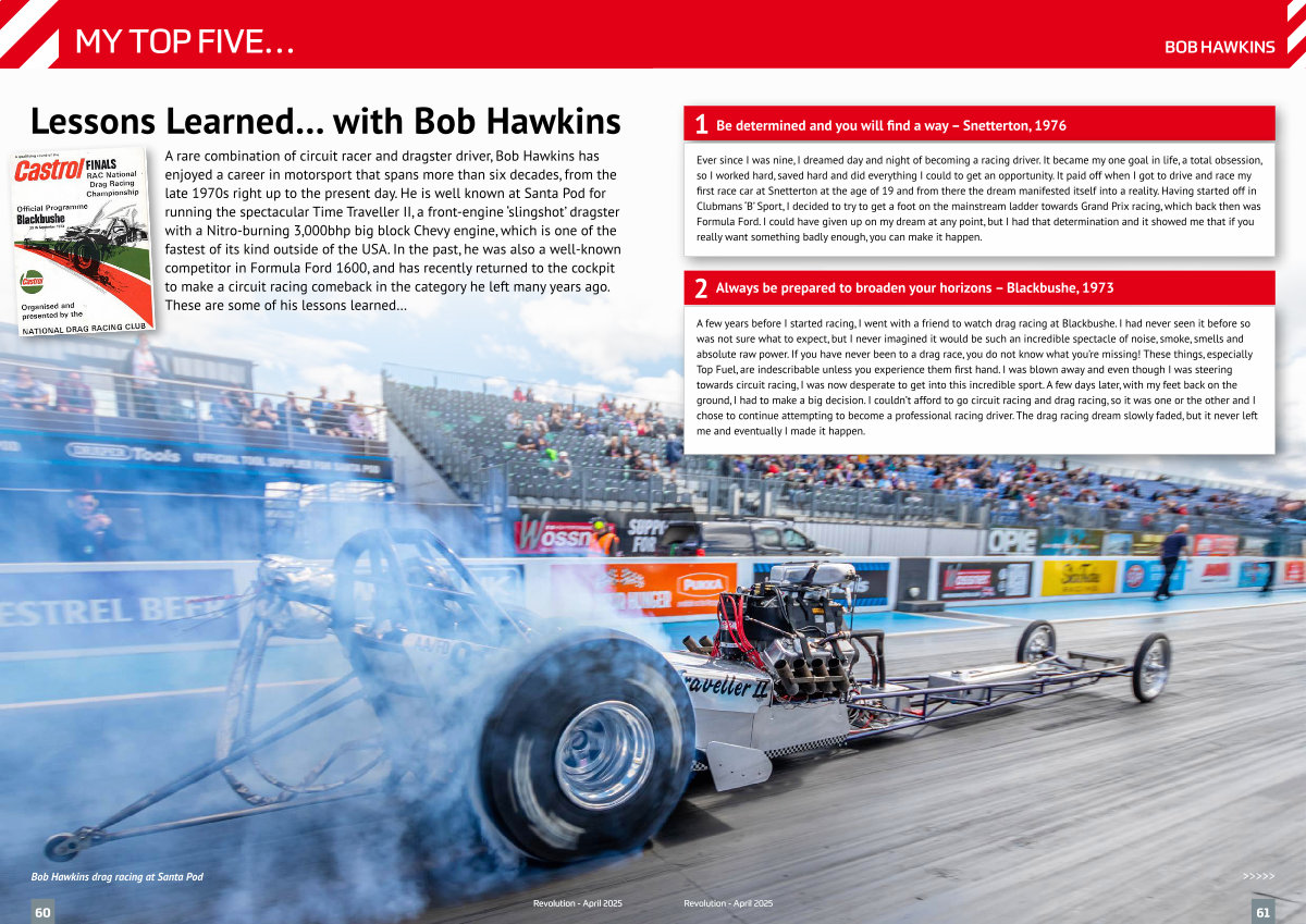 A few years before I started racing, I went with a friend to watch drag racing at Blackbushe. I had never seen it before so was not sure what to expect, but I never imagined it would be such an incredible spectacle of noise, smoke, smells and absolute raw power. If you have never been to a drag race, you do not know what you’ re missing! These things, especially Top Fuel, are indescribable unless you experience them first hand. I was blown away and even though I was steering towards circuit racing, I was now desperate to get into this incredible sport. A few days later, with my feet back on the ground, I had to make a big decision. I couldn’ t afford to go circuit racing and drag racing, so it was one or the other and I chose to continue attempting to become a professional racing driver. The drag racing dream slowly faded, but it never left me and eventually I made it happen.