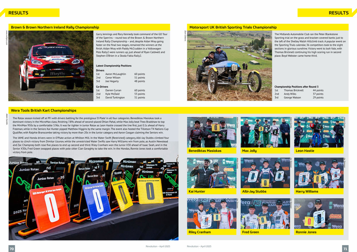 The Midlands Automobile Club ran the Peter Blankstone Sporting trial on the grass and bracken covered banks just to the left of the Shelley Walsh Hillclimb track. A popular event on the Sporting Trials calendar, 36 competitors took to the eight sections in glorious sunshine. Victory went to Josh Vale, with Thomas Bricknell continuing his high scoring run in second place. Boyd Webster came home third.