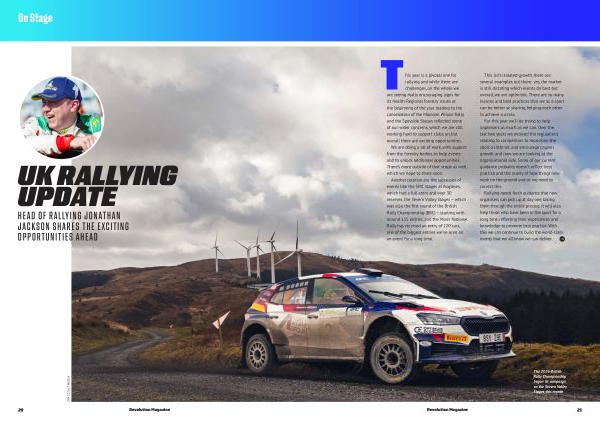 T his year is a pivotal one for rallying and while there are challenges, on the whole we are seeing really encouraging signs for its health. Regional forestry issues at the beginning of the year leading to the cancellation of the Malcolm Wilson Rally and the Speyside Stages reflected some of our wider concerns, which we are still working hard to support clubs on, but overall there are exciting opportunities.