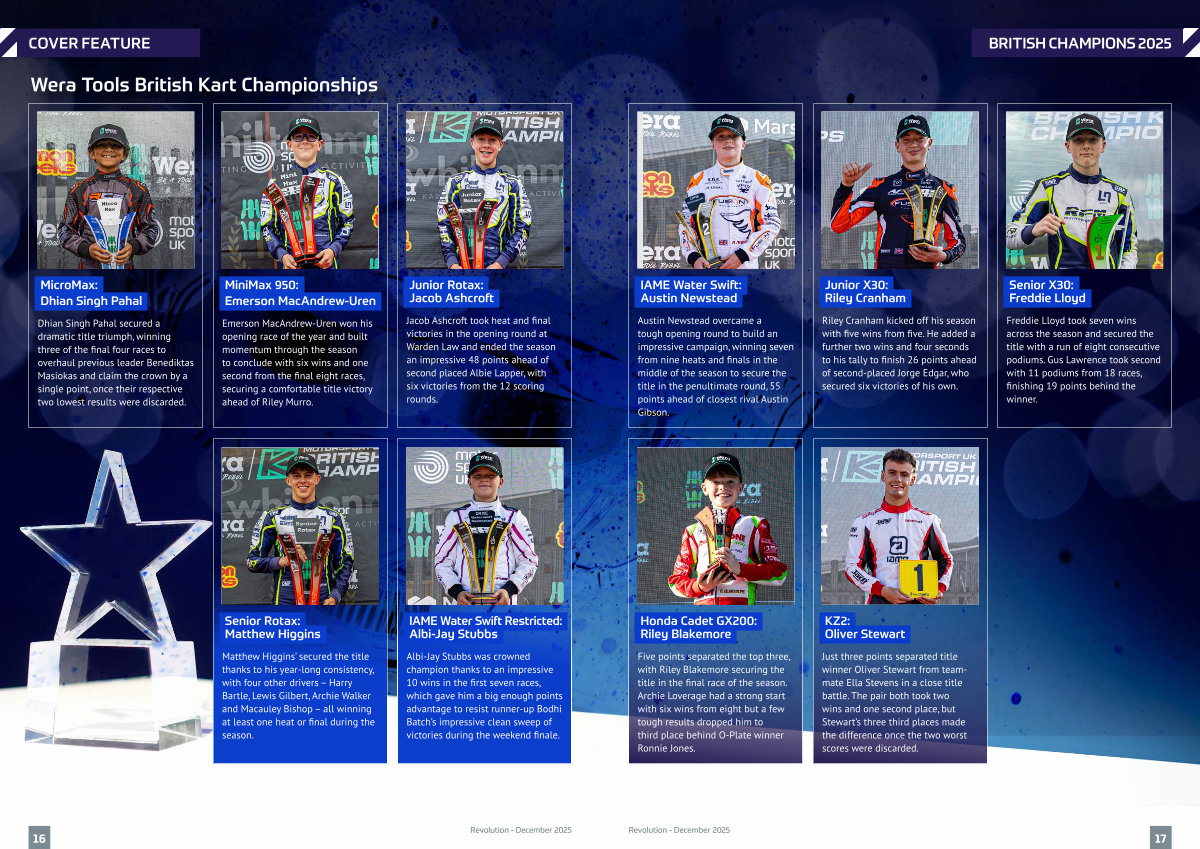 Five points separated the top three, with Riley Blakemore securing the title in the final race of the season. Archie Loverage had a strong start with six wins from eight but a few tough results dropped him to third place behind O-Plate winner Ronnie Jones.