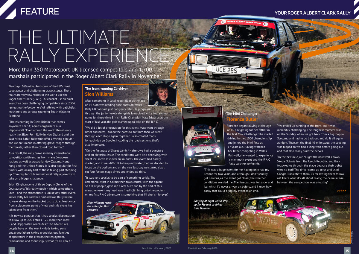 More than 350 Motorsport UK licensed competitors and 1,700 marshals participated in the Roger Albert Clark Rally in November