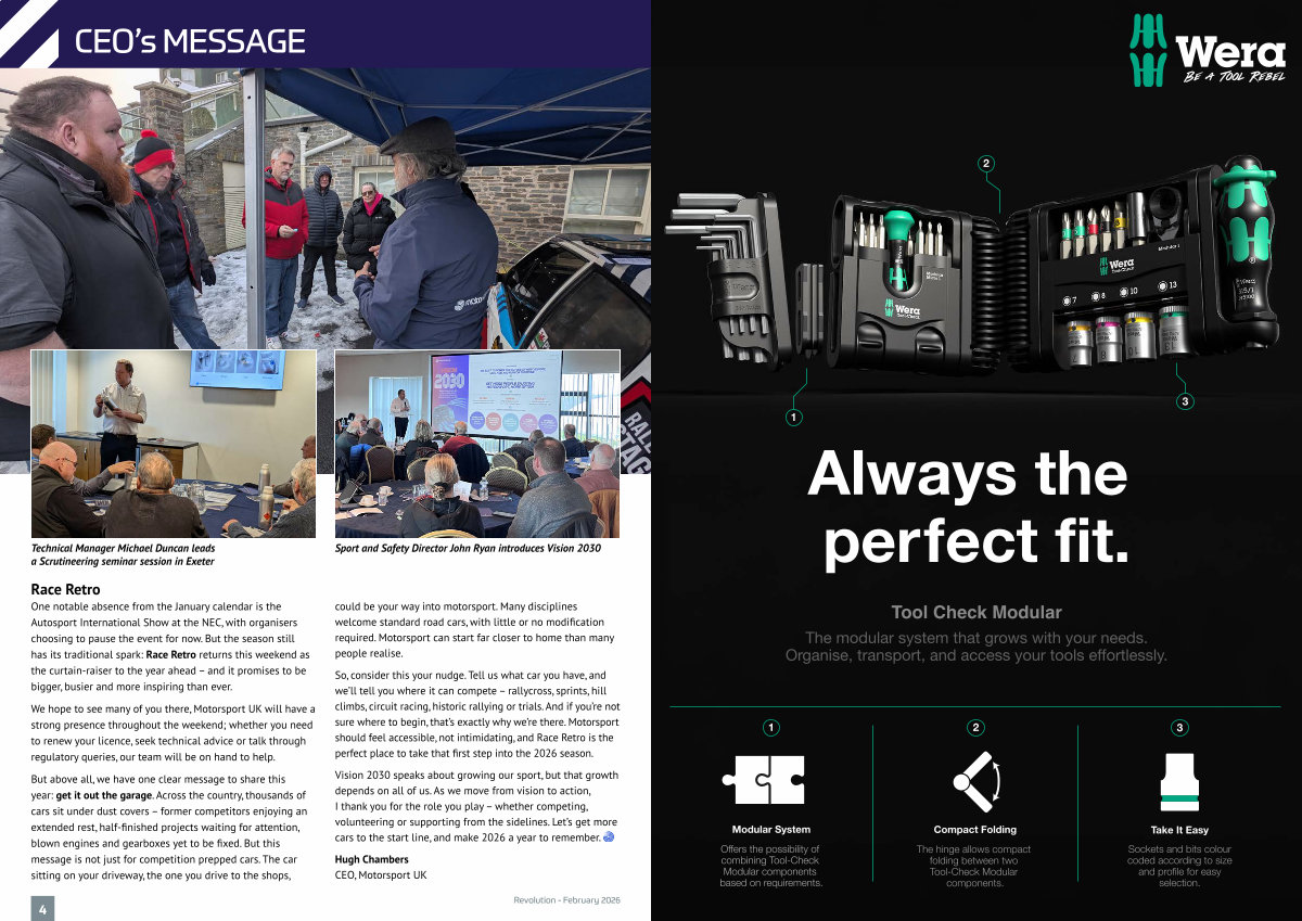 Vision 2030 speaks about growing our sport, but that growth depends on all of us. As we move from vision to action, I thank you for the role you play – whether competing, volunteering or supporting from the sidelines. Let’ s get more cars to the start line, and make 2026 a year to remember.