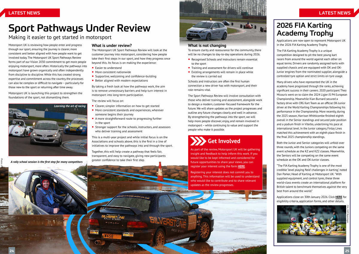The Sport Pathways Review will involve consultation with those who deliver training and assessment, alongside work to design a modern, customer-focused framework for the future. We will share updates as the project progresses and outline any future changes clearly and well in advance. By strengthening the pathways into the sport, we will help more people discover, enjoy, and remain involved in motorsport – while continuing to value and support the people who make it possible.