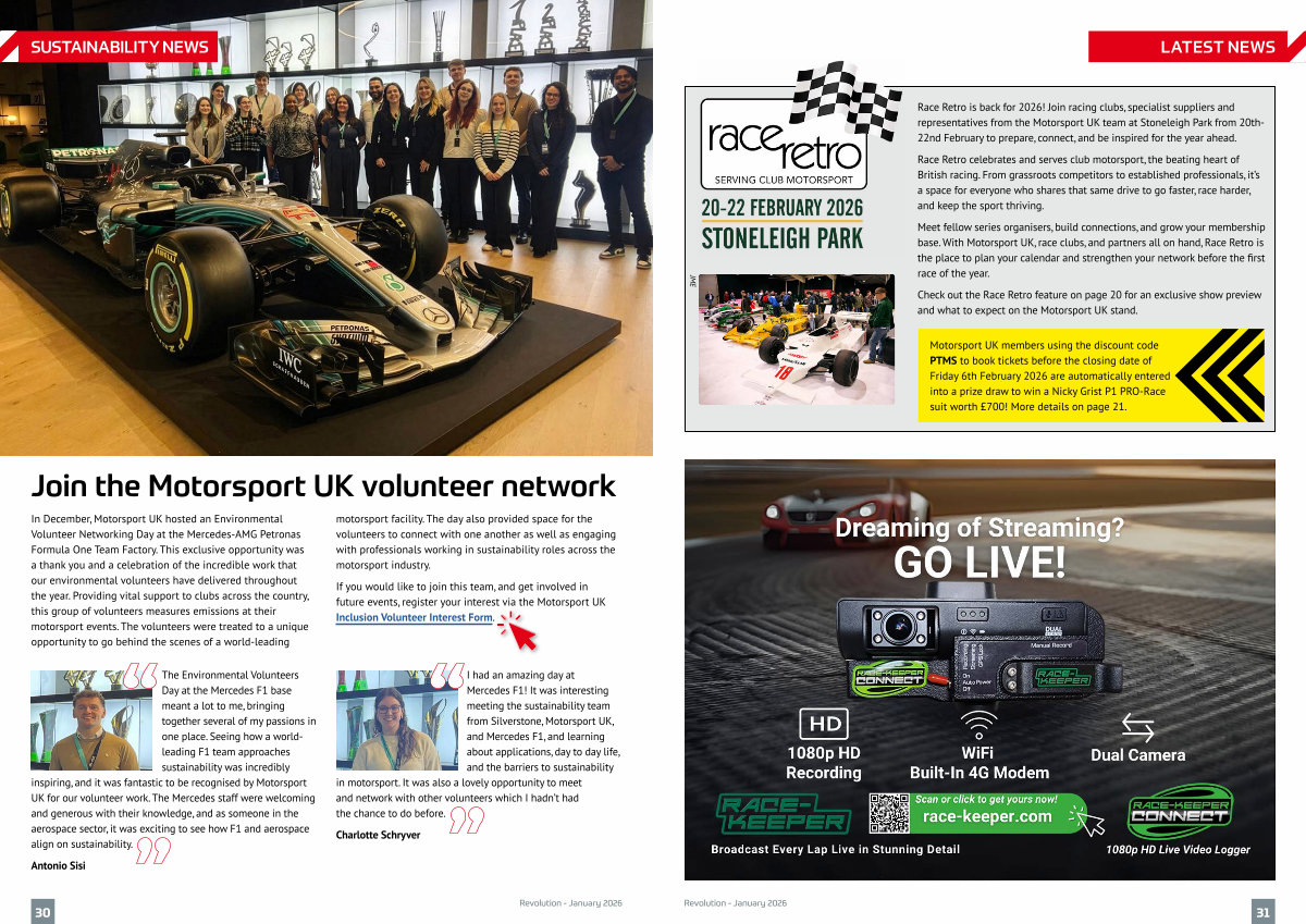 The Environmental Volunteers Day at the Mercedes F1 base meant a lot to me, bringing together several of my passions in one place. Seeing how a worldleading F1 team approaches sustainability was incredibly inspiring, and it was fantastic to be recognised by Motorsport UK for our volunteer work. The Mercedes staff were welcoming and generous with their knowledge, and as someone in the aerospace sector, it was exciting to see how F1 and aerospace align on sustainability.