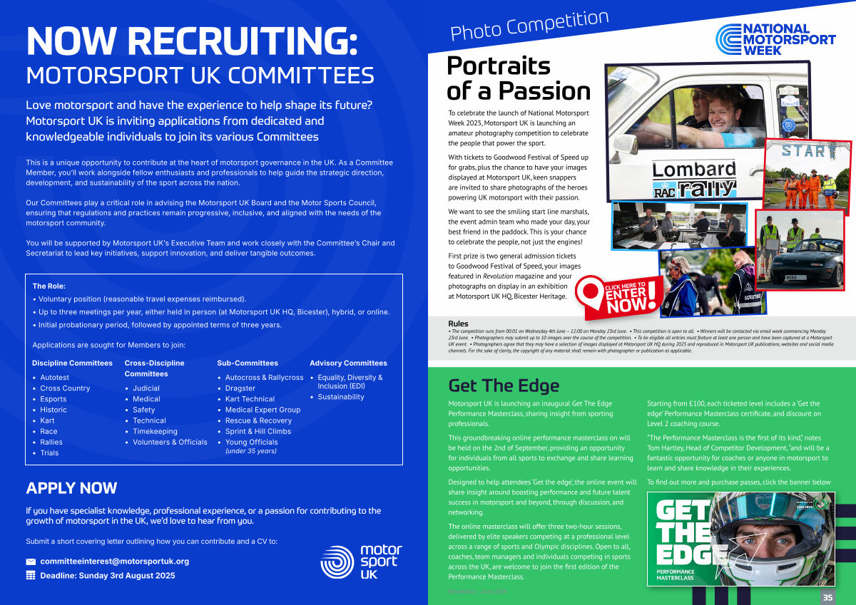 • The competition runs from 00:01 on Wednesday 4th June – 12:00 on Monday 23rd June. • This competition is open to all. • Winners will be contacted via email week commencing Monday 23rd June. • Photographers may submit up to 10 images over the course of the competition. • To be eligible all entries must feature at least one person and have been captured at a Motorsport UK event. • Photographers agree that they may have a selection of images displayed at Motorsport UK HQ during 2025 and reproduced in Motorsport UK publications, websites and social media channels. For the sake of clarity, the copyright of any material shall remain with photographer or publication as applicable.