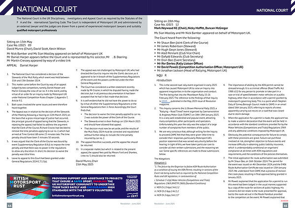 1. This is the second road rally event organised in early 2025 which has caused Motorsport UK to raise an Inquiry into apparent irregularities in its the organisation and conduct. The first being that into the Moonbeam Rally, 15-16 February 2025. The reference to the findings of that Inquiry is J2025 / 7, published in the May 2025 issue of Revolution magazine.