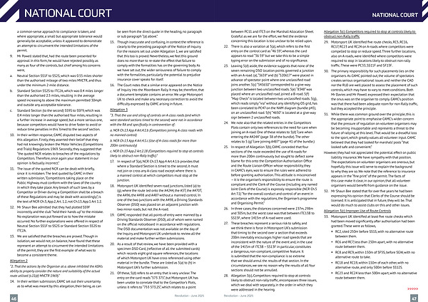 11. The issue of the quoted NCR can be dealt with briefly, since it is mistaken. The text quoted by CAMC in their written submission,“ Competitions taking place on the Public Highway must conform with the laws of the country in which they take place. Any breach of such laws by a Competitor or Driver during a Competition shall be a breach of these Regulations and may be dealt with accordingly”, is the text of NCR Ch. 3, App. 2, Art. 1.2, not Ch. 13, App. 1 Art 1.2.