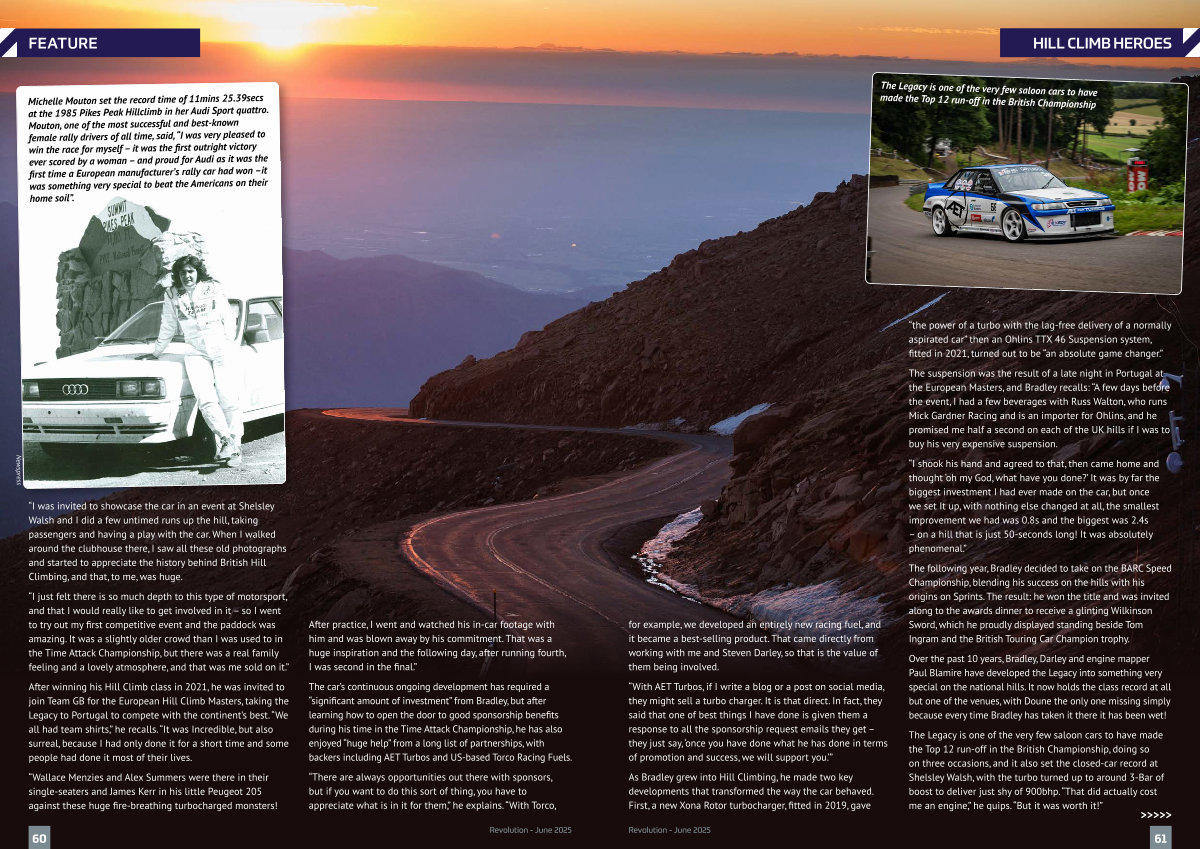 After winning his Hill Climb class in 2021, he was invited to join Team GB for the European Hill Climb Masters, taking the Legacy to Portugal to compete with the continent’ s best.“ We all had team shirts,” he recalls.“ It was Incredible, but also surreal, because I had only done it for a short time and some people had done it most of their lives.