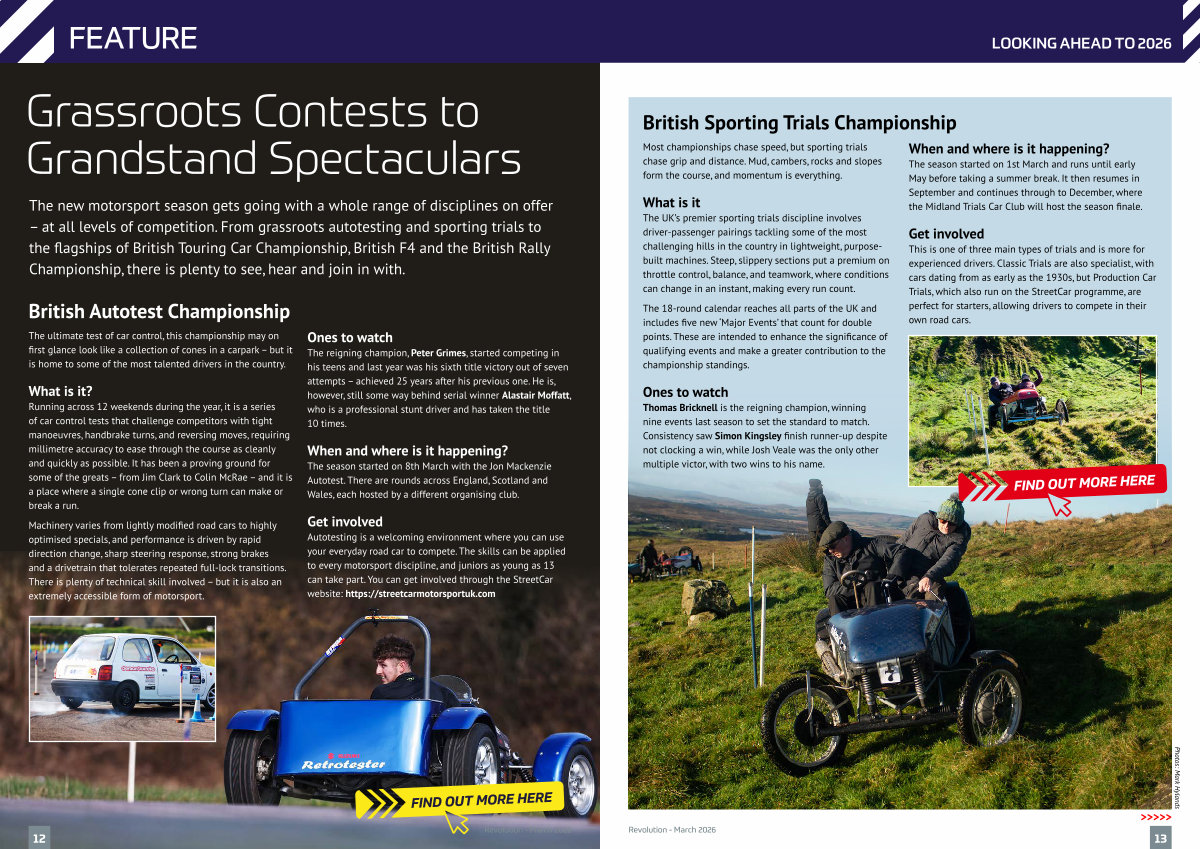 The new motorsport season gets going with a whole range of disciplines on offer – at all levels of competition. From grassroots autotesting and sporting trials to the flagships of British Touring Car Championship, British F4 and the British Rally Championship, there is plenty to see, hear and join in with.