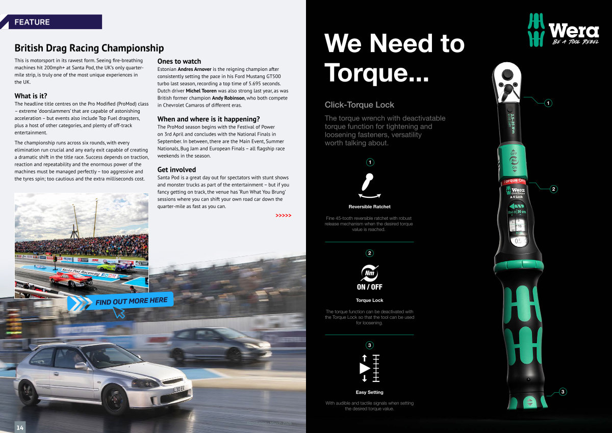 Fine 45-tooth reversible ratchet with robust release mechanism when the desired torque value is reached.