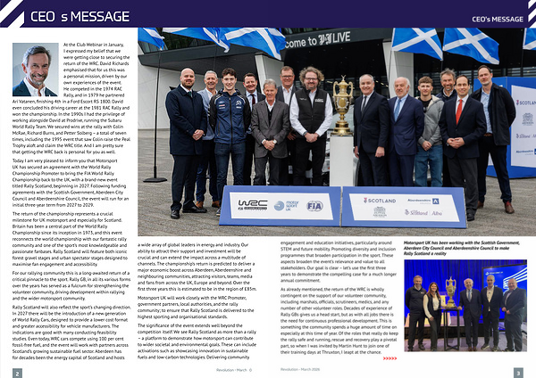 Today I am very pleased to inform you that Motorsport UK has secured an agreement with the World Rally Championship Promoter to bring the FIA World Rally Championship back to the UK, with a brand-new event titled Rally Scotland, beginning in 2027. Following funding agreements with the Scottish Government, Aberdeen City Council and Aberdeenshire Council, the event will run for an initial three-year term from 2027 to 2029.