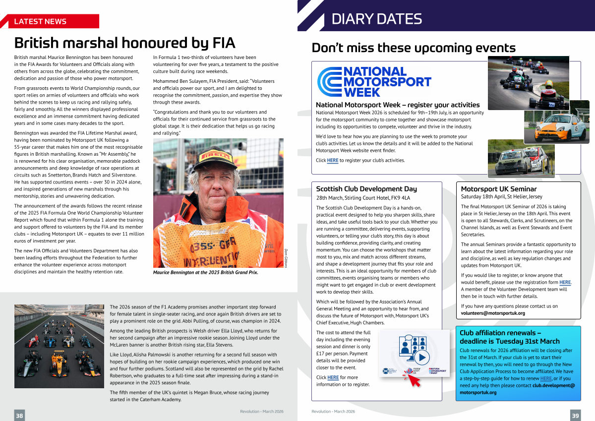 National Motorsport Week 2026 is scheduled for 9th – 19th July, is an opportunity for the motorsport community to come together and showcase motorsport including its opportunities to compete, volunteer and thrive in the industry.