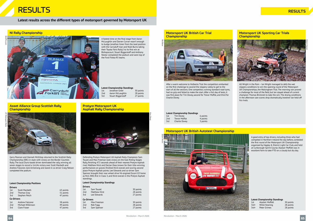 LATEST NEWS Latest results across the different types of motorsport governed by Motorsport UK