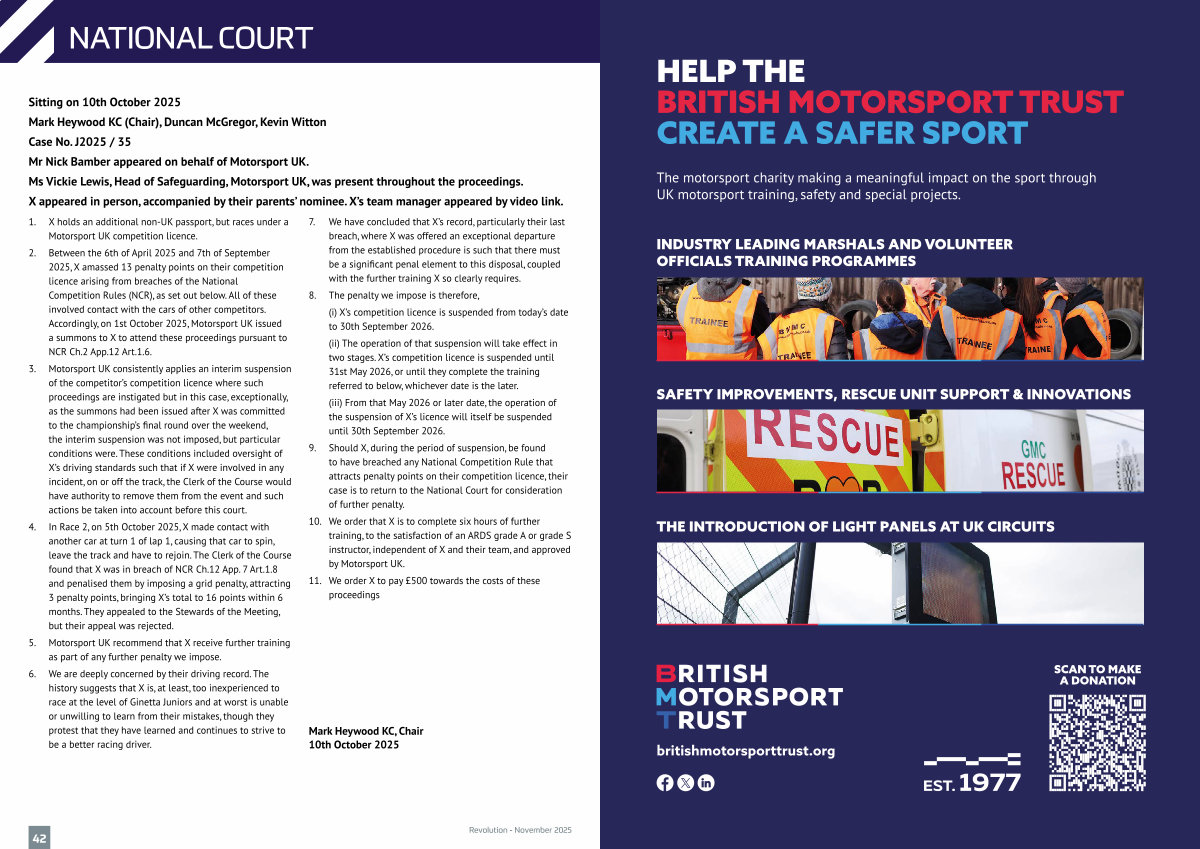 HELP THE BRITISH MOTORSPORT TRUST CREATE A SAFER SPORT