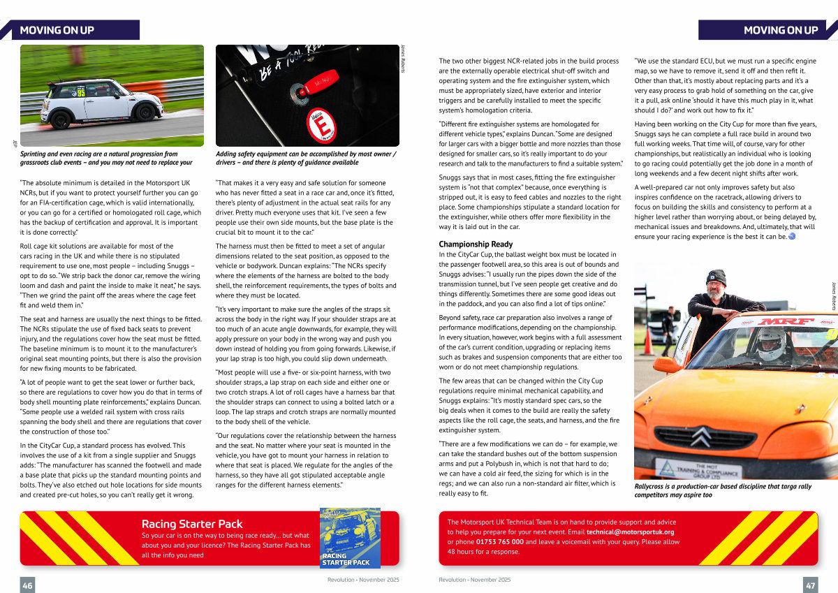 “ The absolute minimum is detailed in the Motorsport UK NCRs, but if you want to protect yourself further you can go for an FIA-certification cage, which is valid internationally, or you can go for a certified or homologated roll cage, which has the backup of certification and approval. It is important it is done correctly.”