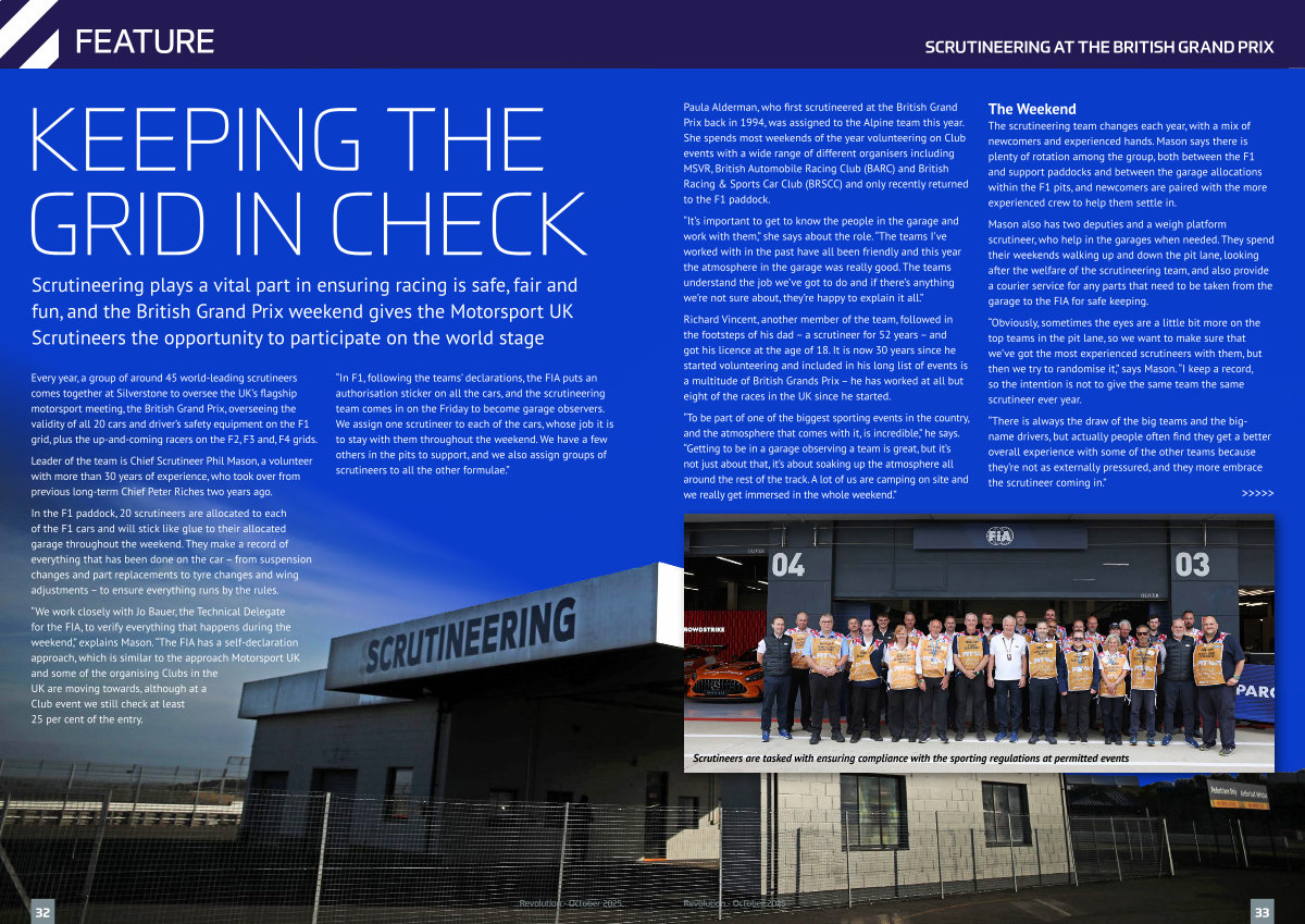 Scrutineering plays a vital part in ensuring racing is safe, fair and fun, and the British Grand Prix weekend gives the Motorsport UK Scrutineers the opportunity to participate on the world stage