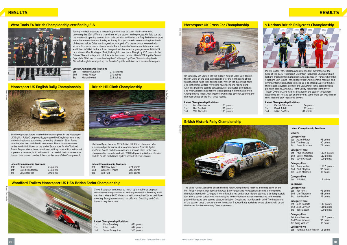 The 2025 Fuchs Lubricants British Historic Rally Championship reached a turning point on the Phil Price Memorial Woodpecker Rally, as Barry Jordan and Arwel Jenkins sealed a momentous championship title in Category 4, while Paul Barrett and Arthur Kierans claimed a thrilling overall win after a day of classic Mid Wales rallying in testing weather. Dan Mennell and John Roberts pushed Barrett to take second place, with Robert Gough and Jack Bowen in third. The final round of the season takes crews to the north east for Trackrod Rally Yorkshire where all eyes will be on the battles for the remaining Category crowns.